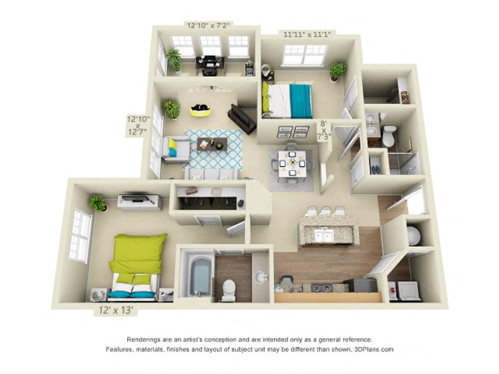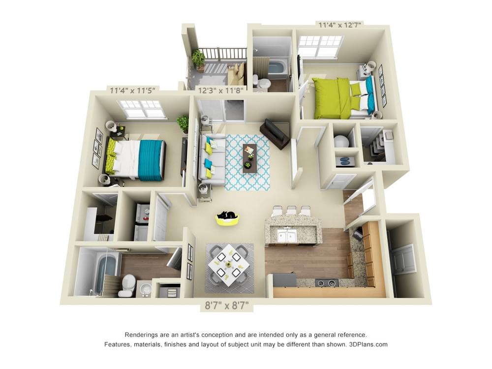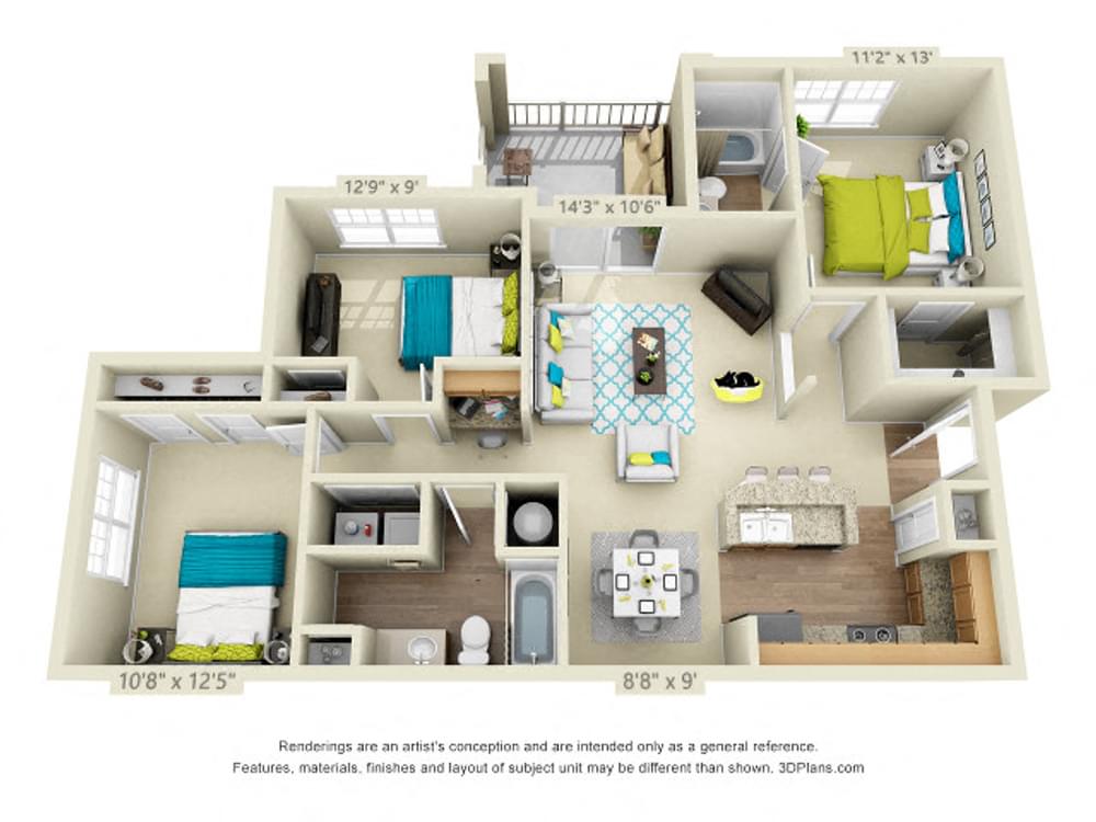 Unit Type3 Bed / 2 BathFloor Area1,187 sq. ft.AvailableTodayStarting at$1,748 / mo