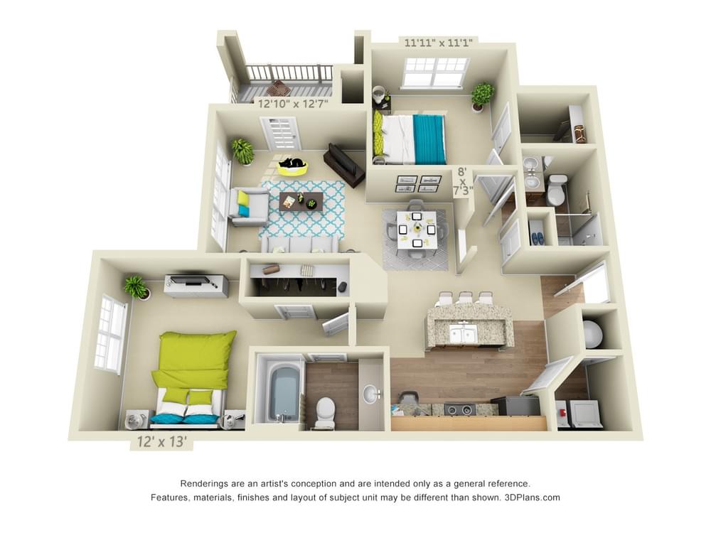 Unit Type2 Bed / 2 BathFloor Area1,153 sq. ft.Available12/26/2025Starting at$1,673 / mo